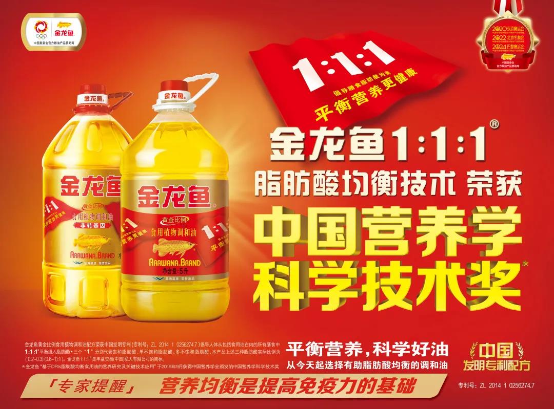 2002年,金龙鱼第二代食用调和油问世,通过八种植物油的科学配比,帮助消费者每日膳食摄入饱和脂肪酸、单不饱和脂肪酸、多不饱和脂肪酸达到科学平衡。膳食脂肪酸平衡健康理念的推广与产品践行,让国人的饮食观念从“安全”向“营养健康”提升。