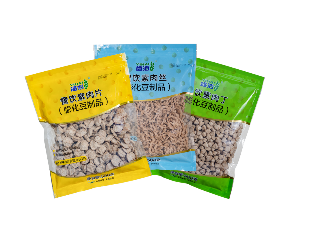 益海牌“餐饮素肉”产自秦皇岛金海食品工业有限公司,以优质非转基因大豆蛋白为主要原料加工而成,具有类似“真肉”口感,可广泛应用于肉制品、素食、餐饮及保健食品等领域。